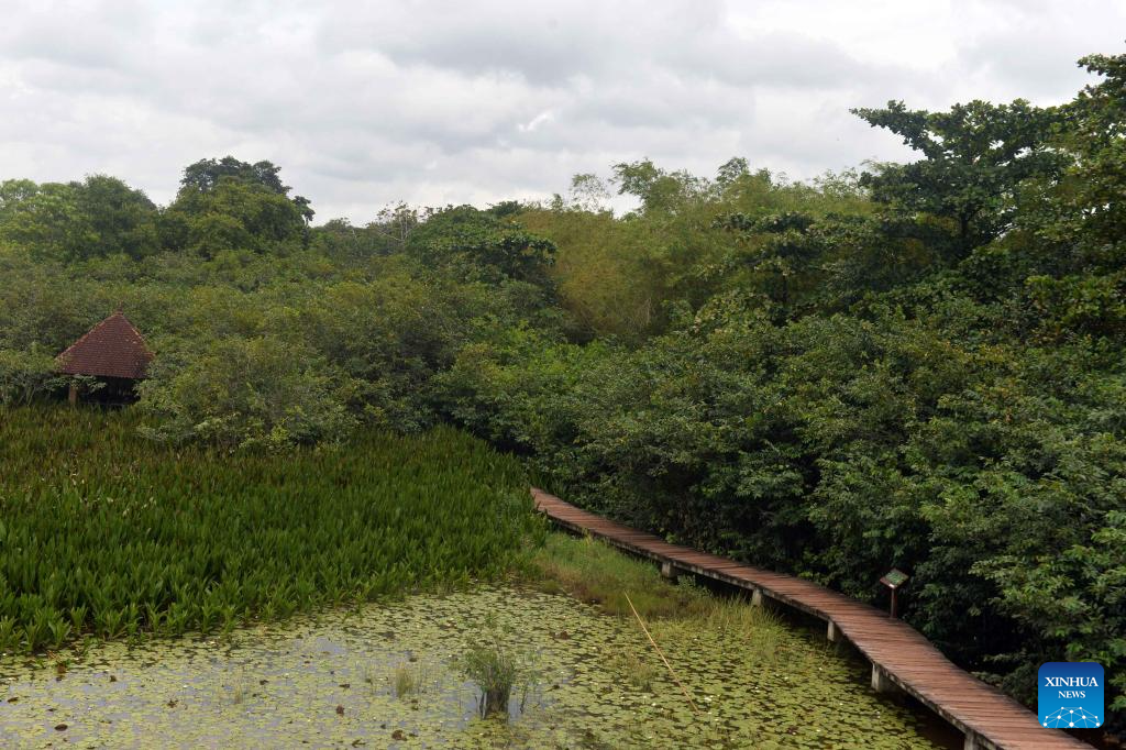 This photo taken on July 24, 2025 shows a view of mangroves at Beddagana Wetland Park on the outskirts of Colombo, Sri Lanka. July 26 marks the International Day for the Conservation of the Mangrove Ecosystem. Sri Lanka's mangroves play an important role in purifying seawater, buffering coastal storms, sequestering carbon and sustaining biodiversity. (Photo by Gayan Sameera/Xinhua)