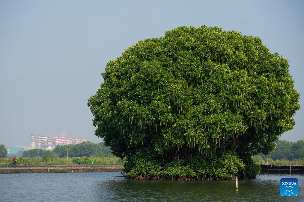 Mangrove trees are seen in a seaweed pond at Tarumajaya village of Bekasi district, in West Java province, Indonesia, July 26, 2025. July 26 marks the International Day for the Conservation of the Mangrove Ecosystem. Adopted by the General Conference of the United Nations Educational, Scientific and Cultural Organisation (UNESCO) in 2015, this special day aims to raise awareness of the importance of mangrove ecosystems as "unique, special and vulnerable ecosystem" and to promote solutions for their sustainable management, conservation and uses. (Xinhua/Veri Sanovri)