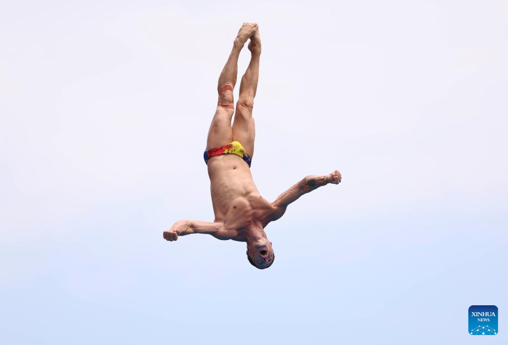 Constantin Popovici of Romania competes during the men's 27m final of high diving event at the World Aquatics Championships in Singapore, July 27, 2025. (Xinhua/Luo Yuan)