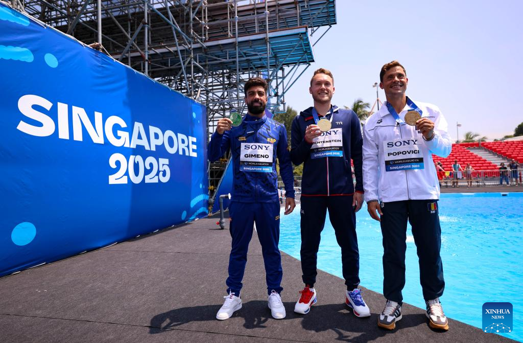 SINGAPORE, July 27 (Xinhua) -- James Lichtenstein of the United States produced a clutch final-round performance to capture gold in the men's 27-meter high diving at the World Aquatics Championships here on Sunday.