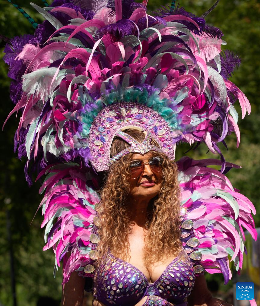 A costumed reveler takes part in the Carnival Parade during the 2025 Caribbean Days Festival in Coquitlam, British Columbia, Canada, July 26, 2025. The two-day event featured live music, cultural performances, a parade, traditional Caribbean cuisine, and a craft market, highlighting the vibrancy of Caribbean culture. (Photo by Liang Sen/Xinhua)