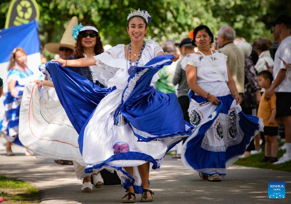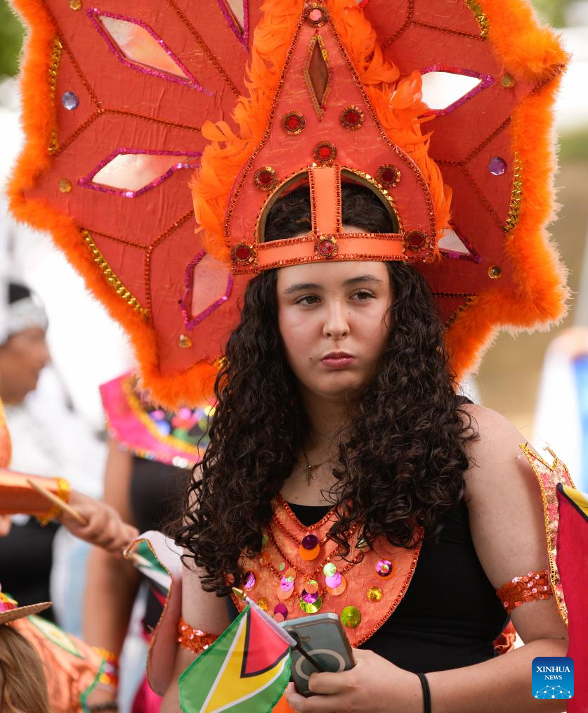 Dancers perform at the Carnival Parade during the 2025 Caribbean Days Festival in Coquitlam, British Columbia, Canada, July 26, 2025. The two-day event featured live music, cultural performances, a parade, traditional Caribbean cuisine, and a craft market, highlighting the vibrancy of Caribbean culture. (Photo by Liang Sen/Xinhua)