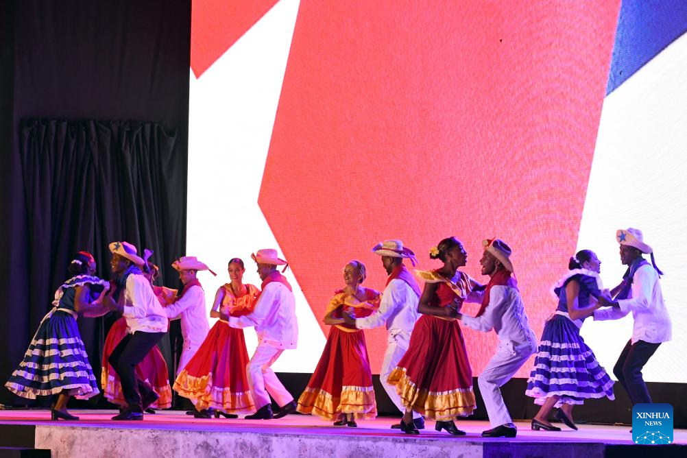 Cuban dancers perform at the event marking the 72nd anniversary of the July 26, 1953 uprising in Ciego de Avila, Cuba, on July 26, 2025. Cuban party and government leaders, along with a large crowd of citizens, gathered solemnly to commemorate the "National Rebellion Day" in Ciego de Avila, Cuba, on Saturday. (Photo by Joaquín Hernández/Xinhua)