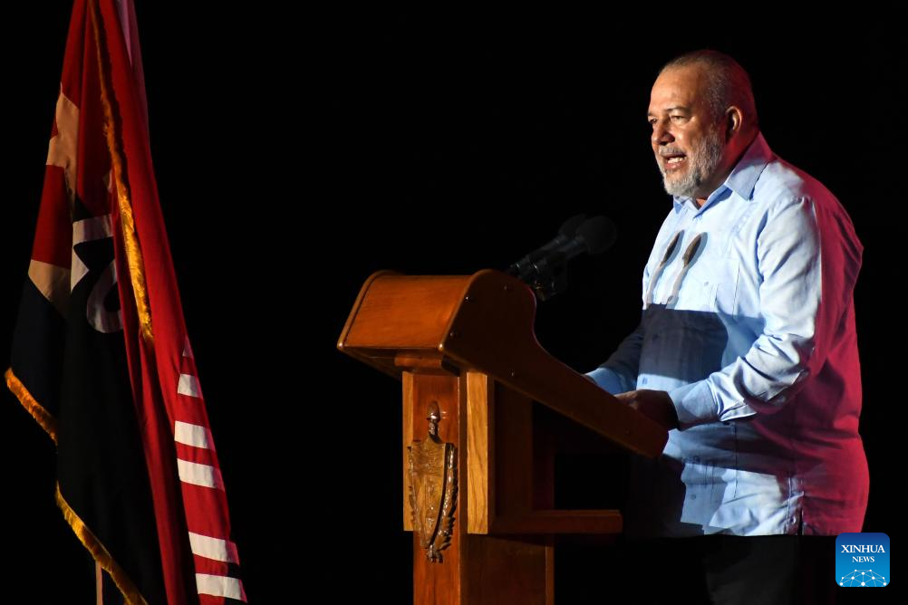 Cuban Prime Minister Manuel Marrero delivers a speech at the event marking the 72nd anniversary of the July 26, 1953 uprising in Ciego de Avila, Cuba, on July 26, 2025. Cuban party and government leaders, along with a large crowd of citizens, gathered solemnly to commemorate the "National Rebellion Day" in Ciego de Avila, Cuba, on Saturday. (Photo by Joaquín Hernández/Xinhua)