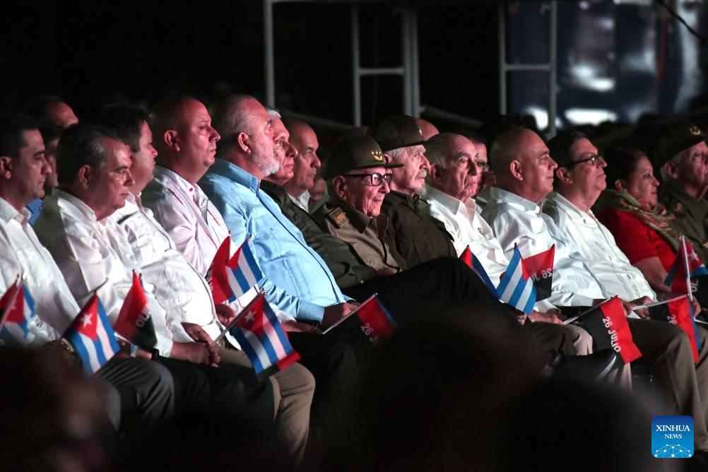 Cuban party and government leaders attend the event marking the 72nd anniversary of the July 26, 1953 uprising in Ciego de Avila, Cuba, on July 26, 2025. Cuban party and government leaders, along with a large crowd of citizens, gathered solemnly to commemorate the "National Rebellion Day" in Ciego de Avila, Cuba, on Saturday. (Photo by Joaquín Hernández/Xinhua)