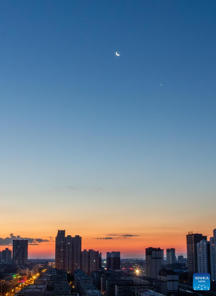 A view of the Venus at its greatest annual altitude is seen next to the crescent moon in Jiamusi City, northeast China's Heilongjiang Province, July 22, 2025. (Photo by Chen Zhiguo/Xinhua)