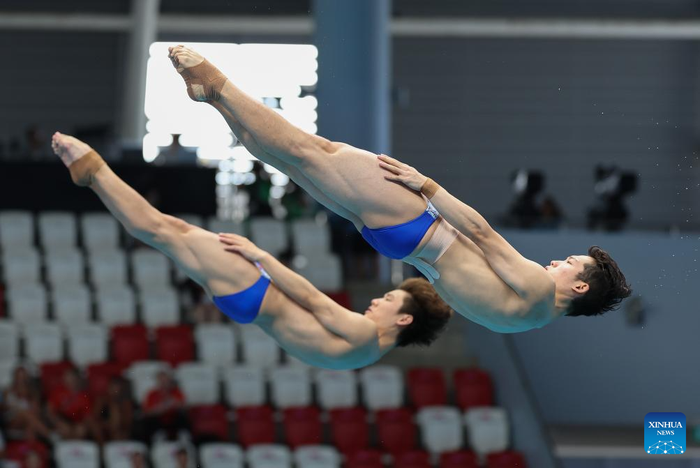 SINGAPORE, July 28 (Xinhua) -- China's Wang Zongyuan and Chen Yuxi each clinched their fourth consecutive world synchro titles on Monday at the World Aquatics Championships, continuing the country's dominance in diving.