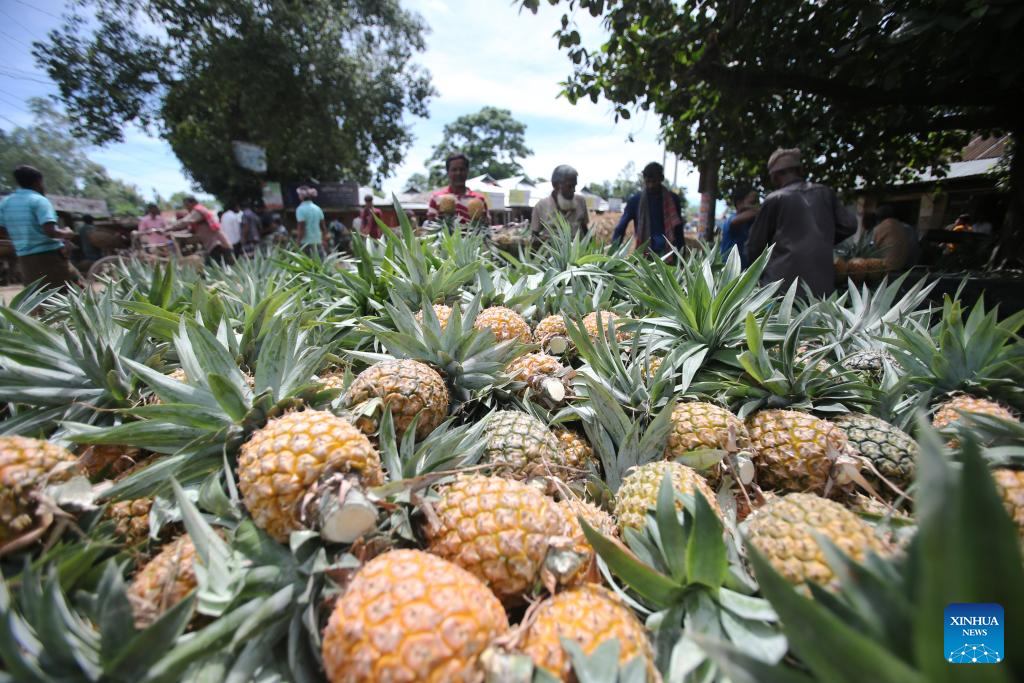 This photo taken on July 25, 2025 shows a local pineapple wholesale market in Tangail, Bangladesh. Tangail is the largest pineapple cultivation area in Bangladesh. (Photo by Habibur Rahman/Xinhua)