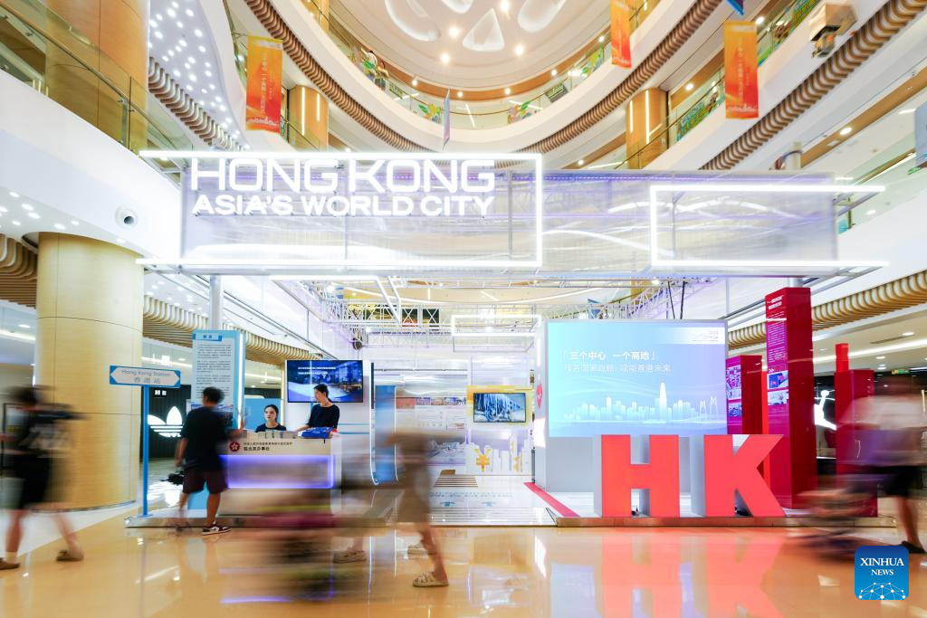 This photo taken on July 28, 2025 shows a Hong Kong-themed exhibition in Urumqi, northwest China's Xinjiang Uygur Autonomous Region. The exhibition kicked off here on Monday. (Xinhua/Xu Hongyan)