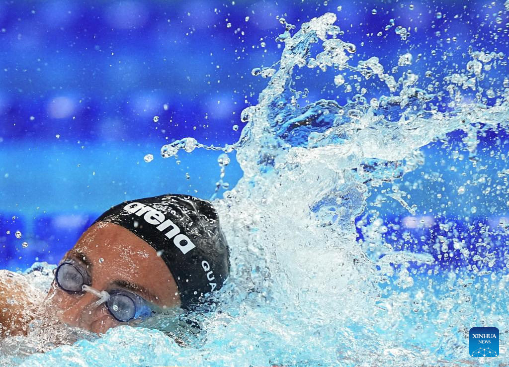 Simona Quadarella of Italy competes during the women's 1500m freestyle final of swimming at the World Aquatics Championships in Singapore, July 29, 2025. (Xinhua/Xue Yuge)
