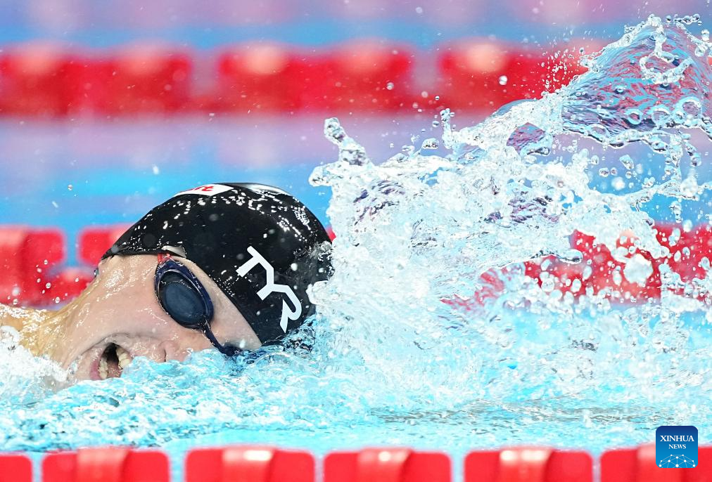 David Popovici of Romania competes during the men's 200m freestyle final of swimming at the World Aquatics Championships in Singapore, July 29, 2025. (Xinhua/Xue Yuge)