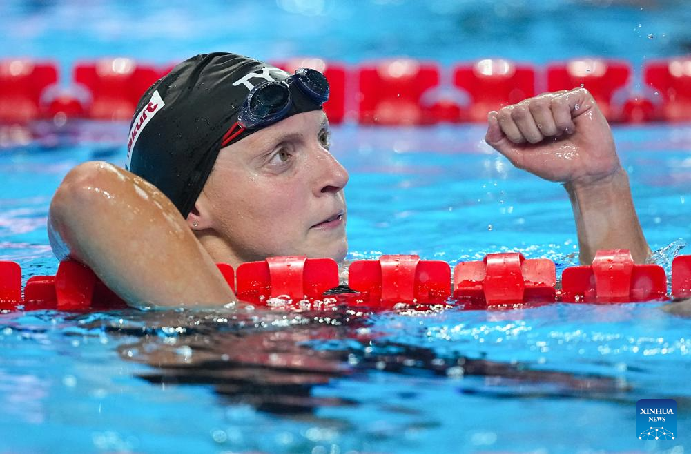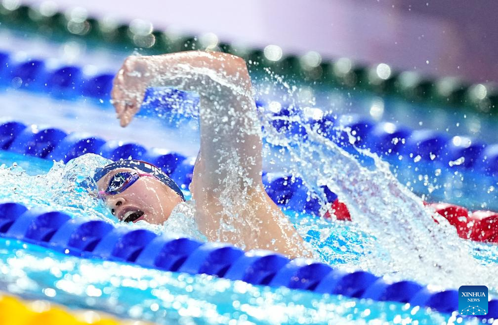 Katie Ledecky of the United States competes during the women's 1500m freestyle final of swimming at the World Aquatics Championships in Singapore, July 29, 2025. (Xinhua/Xue Yuge)