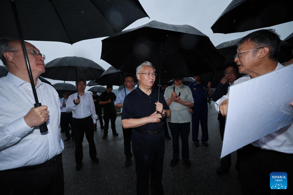 Chinese Vice Premier Zhang Guoqing, also a member of the Political Bureau of the Communist Party of China Central Committee, visits the Miyun Reservoir in Miyun District of Beijing, capital of China, July 28, 2025. Entrusted with the task by Xi Jinping, general secretary of the Communist Party of China (CPC) Central Committee, Zhang arrived in Beijing's Miyun District on Monday evening to visit and console residents displaced by torrential rains, and to oversee on-site flood control and relief efforts. (Xinhua/Liu Bin)