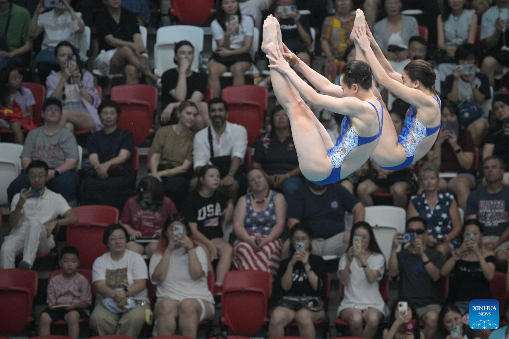 SINGAPORE, July 29 (Xinhua) -- China added two more gold medals to its diving tally at the World Aquatics Championships here on Tuesday.