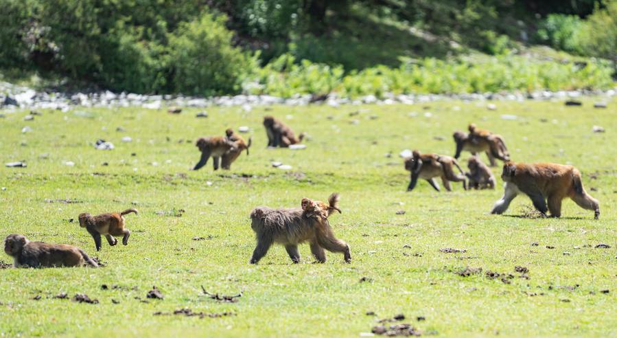 LHASA, July 29 (Xinhua) -- Linze Village of Gongbo'Gyamda County, Nyingchi City, southwest China's Xizang Autonomous Region is a well-known habitat of the Tibetan macaque, a national second-class protected animal species.