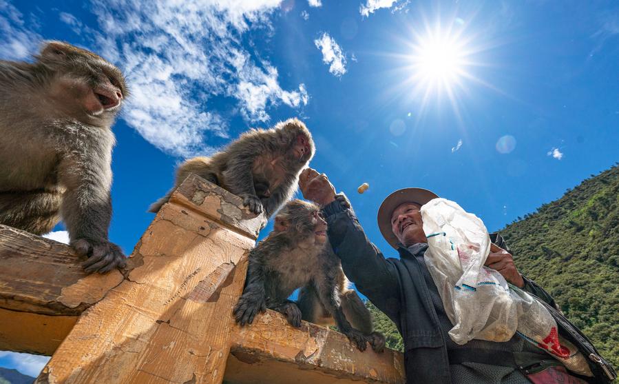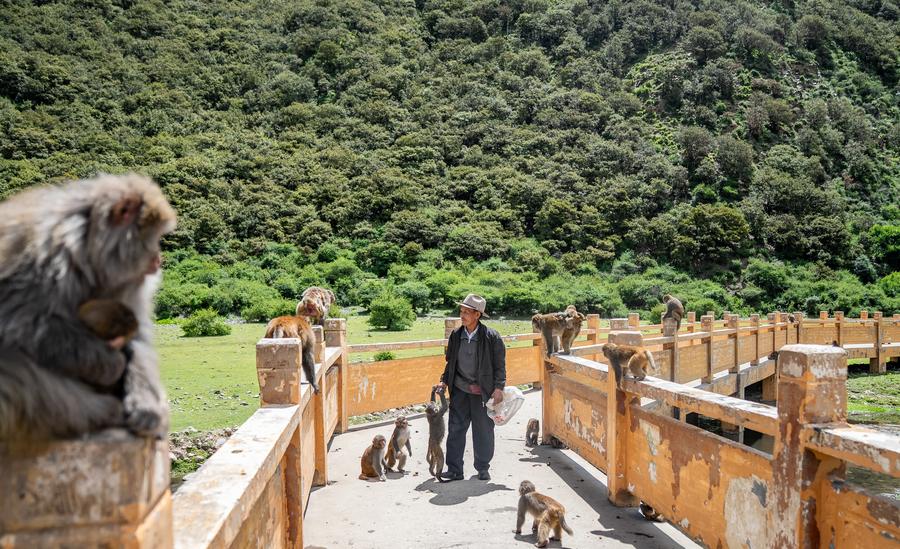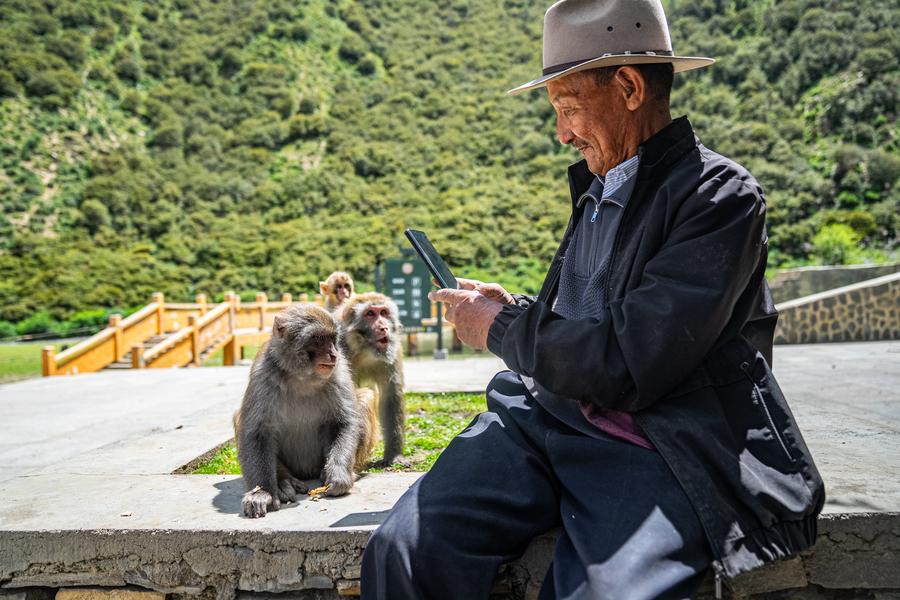 Tobgye is surrounded by Tibetan macaques at Linze ecological and cultural scenic area in Linze Village of Gongbo'Gyamda County, Nyingchi City, southwest China's Xizang Autonomous Region, on July 23, 2025. (Xinhua/Tenzin Nyida)Tibetan macaques are pictured at Linze ecological and cultural scenic area in Linze Village of Gongbo'Gyamda County, Nyingchi City, southwest China's Xizang Autonomous Region, on July 23, 2025. (Xinhua/Tenzin Nyida)Tibetan macaques are pictured at Linze ecological and cultural scenic area in Linze Village of Gongbo'Gyamda County, Nyingchi City, southwest China's Xizang Autonomous Region, on July 23, 2025. (Xinhua/Tenzin Nyida)Tobgye is surrounded by Tibetan macaques at Linze ecological and cultural scenic area in Linze Village of Gongbo'Gyamda County, Nyingchi City, southwest China's Xizang Autonomous Region, on July 23, 2025. (Xinhua/Tenzin Nyida)Tobgye patrols on a boardwalk of Linze ecological and cultural scenic area in Linze Village of Gongbo'Gyamda County, Nyingchi City, southwest China's Xizang Autonomous Region, on July 23, 2025. (Xinhua/Tenzin Nyida)Tobgye feeds peanuts to Tibetan macaques at Linze ecological and cultural scenic area in Linze Village of Gongbo'Gyamda County, Nyingchi City, southwest China's Xizang Autonomous Region, on July 23, 2025. (Xinhua/Tenzin Nyida)Tobgye take photos of Tibetan macaques at Linze ecological and cultural scenic area in Linze Village of Gongbo'Gyamda County, Nyingchi City, southwest China's Xizang Autonomous Region, on July 23, 2025. (Xinhua/Tenzin Nyida)Tobgye feeds peanuts to Tibetan macaques at Linze ecological and cultural scenic area in Linze Village of Gongbo'Gyamda County, Nyingchi City, southwest China's Xizang Autonomous Region, on July 23, 2025. (Xinhua/Tenzin Nyida)Tobgye observes Tibetan macaques on a tree at Linze ecological and cultural scenic area in Linze Village of Gongbo'Gyamda County, Nyingchi City, southwest China's Xizang Autonomous Region, on July 23, 2025. (Xinhua/Tenzin Nyida)