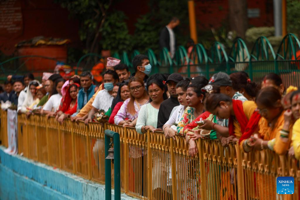 Devotees celebrate Naga Panchami, a Hindu festival dedicated to the worship of snakes, in Kathmandu, Nepal, July 29, 2025. (Photo by Sulav Shrestha/Xinhua)