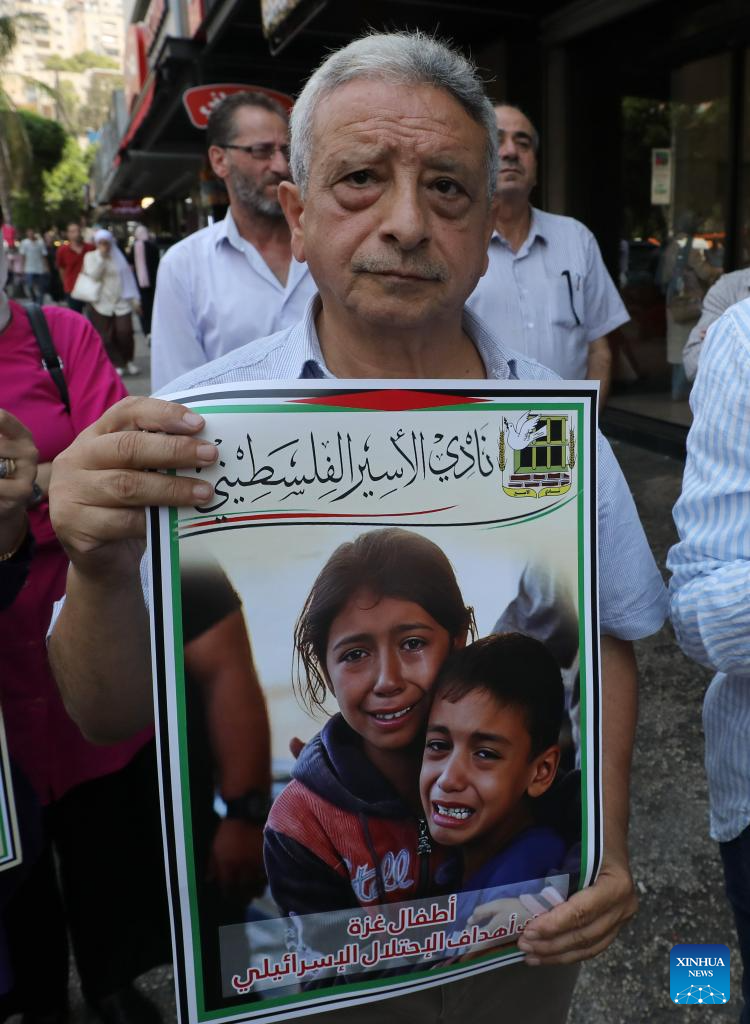 Palestinians participate in a demonstration against the ongoing war in the Gaza Strip and the starvation policy imposed on the residents of Gaza, in the West Bank city of Nablus, on July 29, 2025. (Photo by Nidal Eshtayeh/Xinhua)