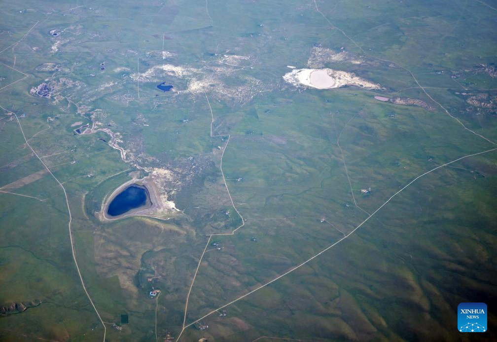 This aerial photo taken with a mobile phone shows the scenery of a grassland and lakes in Xilingol, north China's Inner Mongolia Autonomous Region, July 29, 2025. (Xinhua/Jia Lijun)