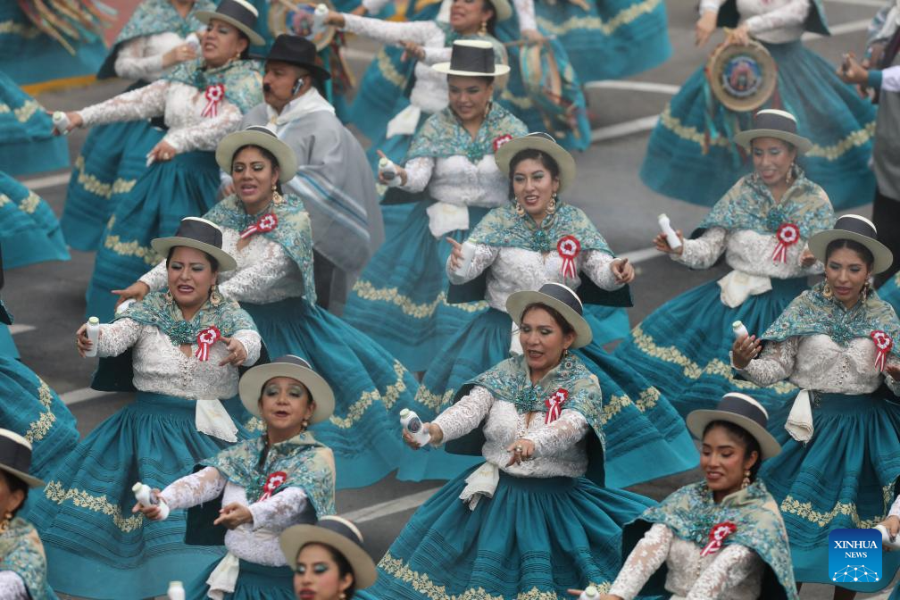 Performers participate in a parade to commemorate the 204th anniversary of Peru's independence in Lima, Peru, on July 29, 2025. (Photo by Mariana Bazo/Xinhua)