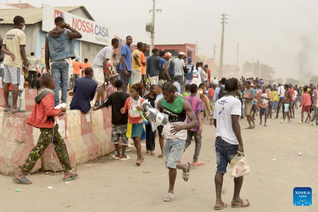 This photo taken on July 28, 2025 shows the chaos following violent riots sparked by a taxi drivers' strike in Luanda, Angola.