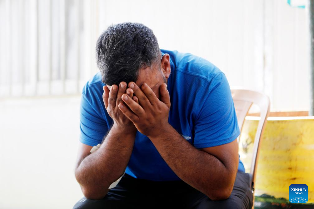 A Palestinian mourns the death of Odeh Mohammad Khalil al-Hathalin in Umm al-Khair village of Hebron, southern West Bank, on July 29, 2025. The young Palestinian man was shot on Monday evening by the Israeli forces in the village of Umm al-Khair, east of Yatta, the Palestinian official news agency WAFA reported. (Photo by Mamoun Wazwaz/Xinhua)