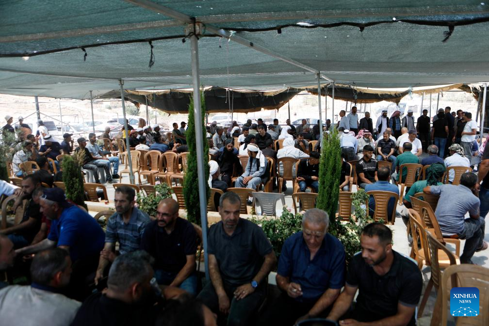 Palestinians mourn the death of Odeh Mohammad Khalil al-Hathalin in Umm al-Khair village of Hebron, southern West Bank, on July 29, 2025. The young Palestinian man was shot on Monday evening by the Israeli forces in the village of Umm al-Khair, east of Yatta, the Palestinian official news agency WAFA reported. (Photo by Mamoun Wazwaz/Xinhua)