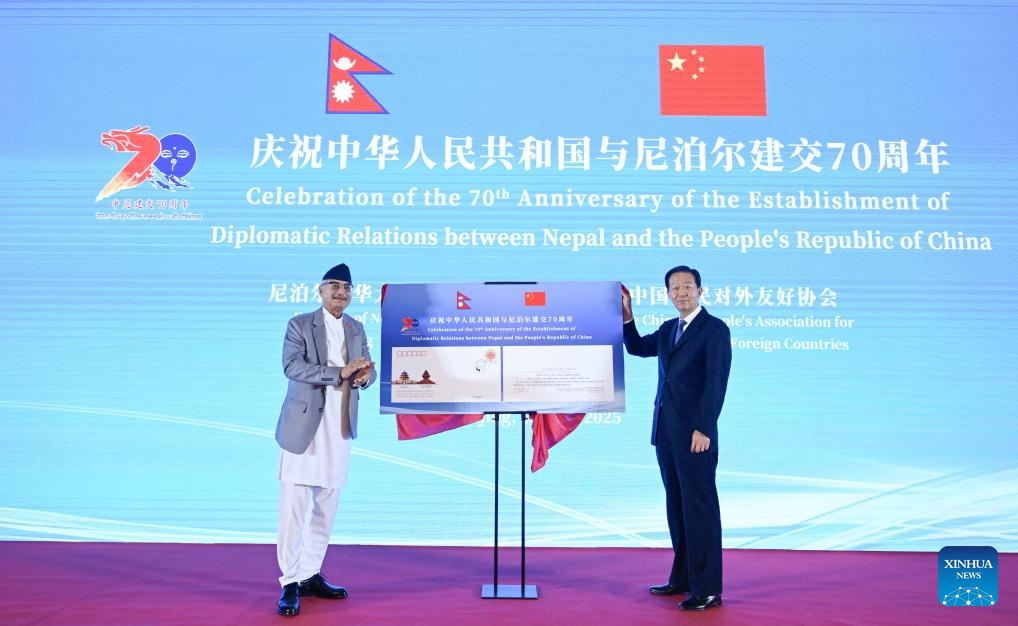 BEIJING, July 30 (Xinhua) -- The Chinese People's Association for Friendship with Foreign Countries and the Embassy of Nepal in China on Wednesday co-hosted a reception in Beijing to celebrate the 70th anniversary of the establishment of diplomatic relations between China and Nepal.