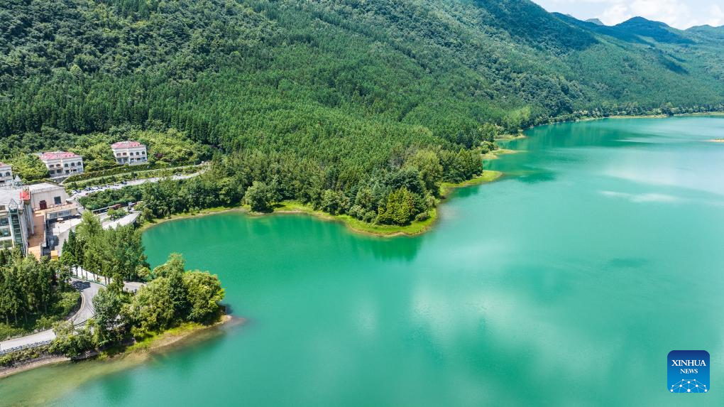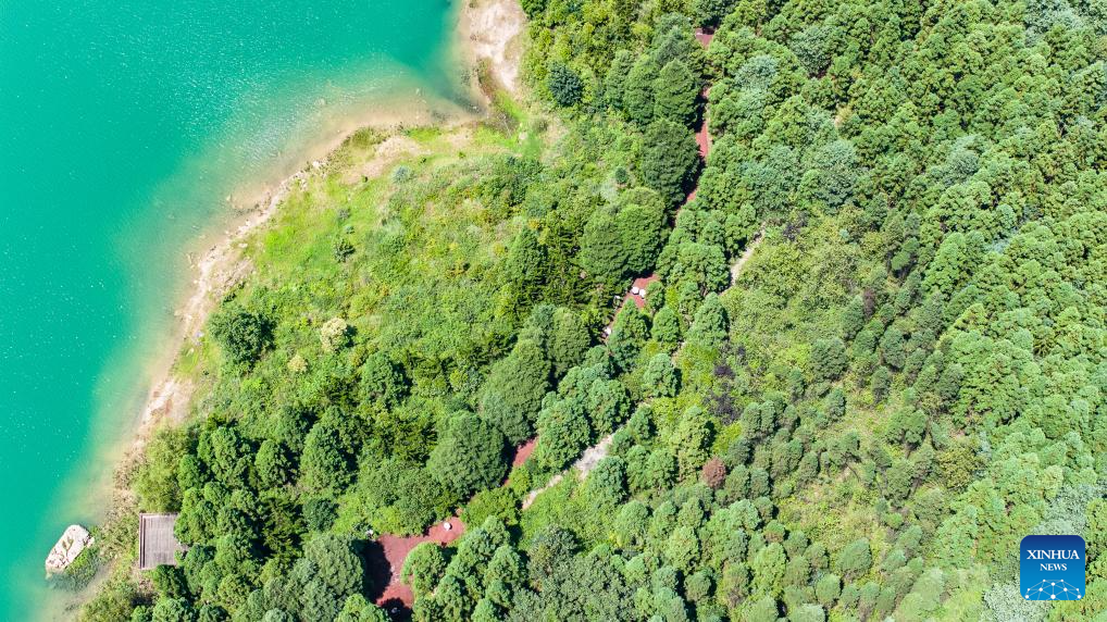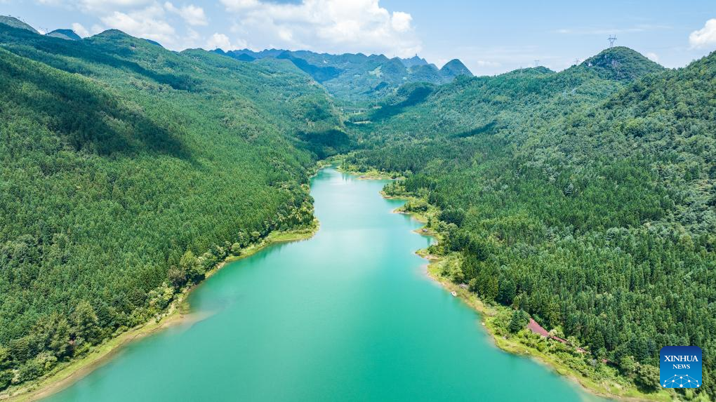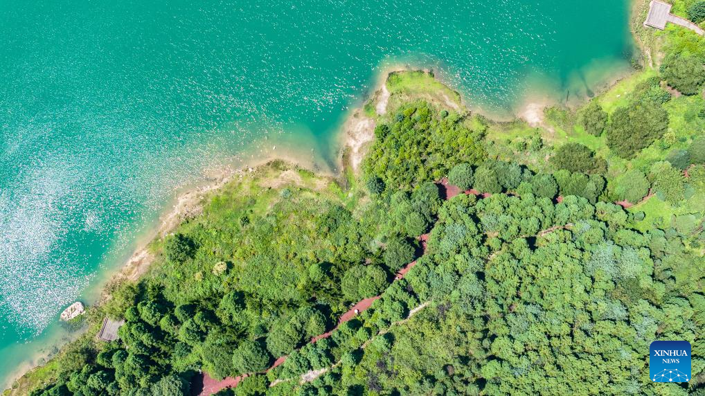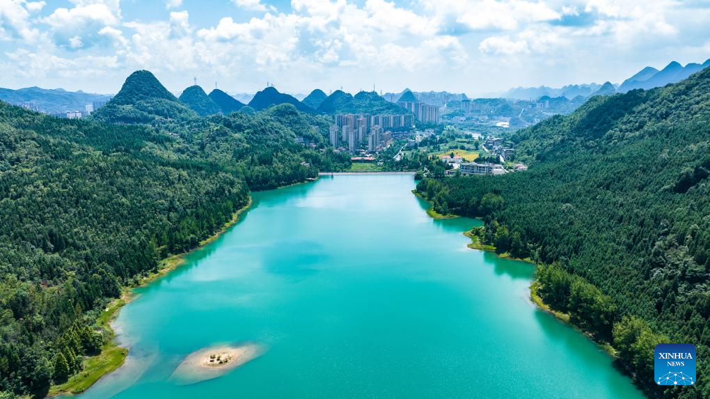 An aerial drone photo taken on July 30, 2025 shows a view of Yaochi Park in Zhongshan District of Liupanshui, southwest China's Guizhou Province. (Xinhua/Tao Liang)