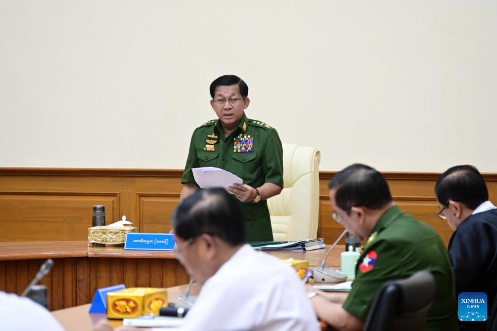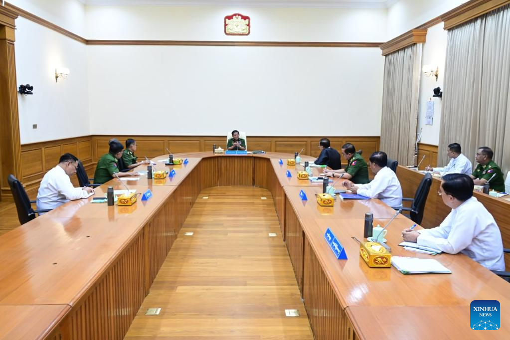 Myanmar's National Defense and Security Council (NDSC) holds a meeting in Nay Pyi Taw, Myanmar, on July 31, 2025. Myanmar's National Defense and Security Council on Thursday formed a new union government and State Security and Peace Commission, the state-owned Myanmar Radio and Television (MRTV) reported. (Myawady Variety Television Channel/Handout via Xinhua)