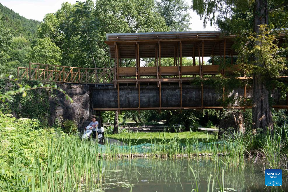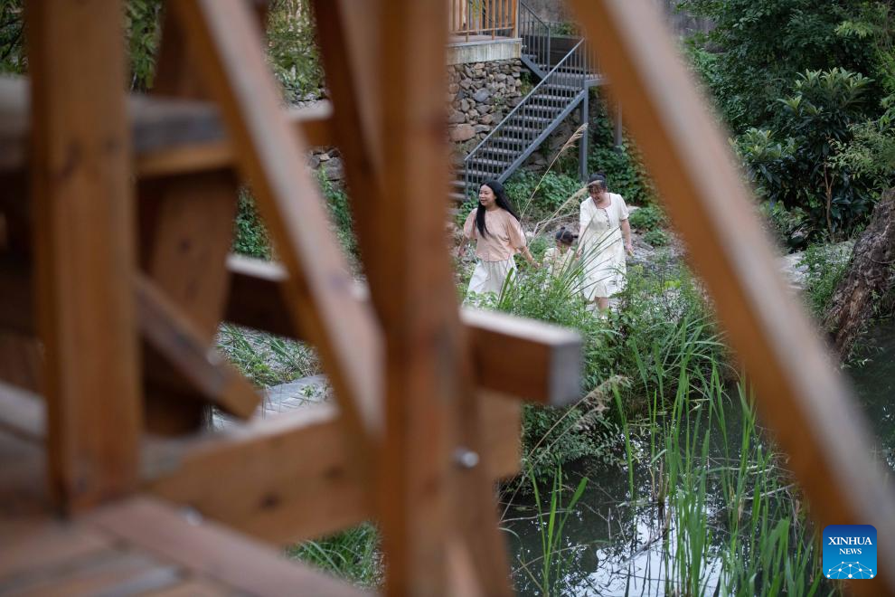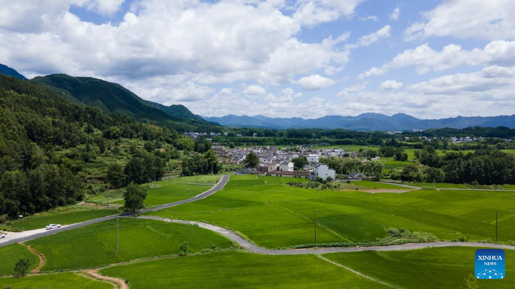 This photo shows the scenery of Fengwu Village, Yixian County, Huangshan City, east China's Anhui Province, July 24, 2025. Fengwu Village in Yixian County is a small village with picturesque scenery. In recent years, design teams were invited by local authorities to revitalize rural public spaces through micro-renovations.