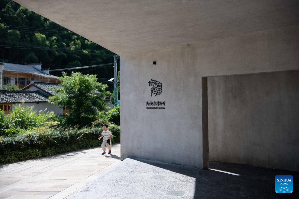 A child runs past the Village Memory Museum in Fengwu Village, Yixian County, Huangshan City, east China's Anhui Province, July 24, 2025. (Xinhua/Zhang Duan)