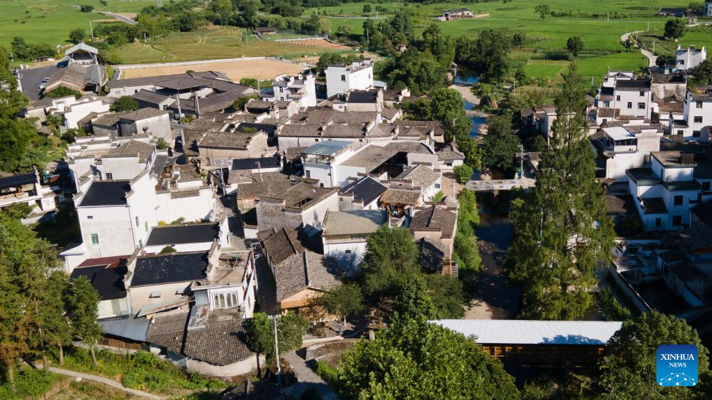 An aerial drone photo shows the scenery of Fengwu Village, Yixian County, Huangshan City, east China's Anhui Province, July 24, 2025. (Xinhua/Zhang Duan)