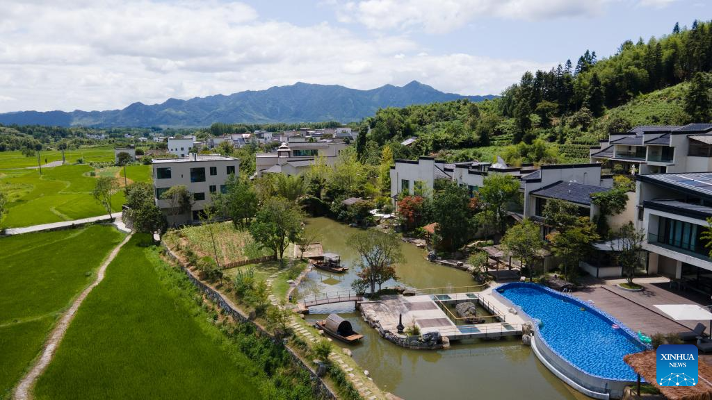 A drone photo shows a homestay in Fengwu Village, Yixian County, Huangshan City, east China's Anhui Province, July 24, 2025. (Xinhua/Zhang Duan)