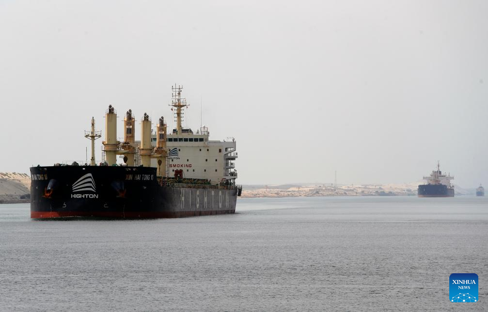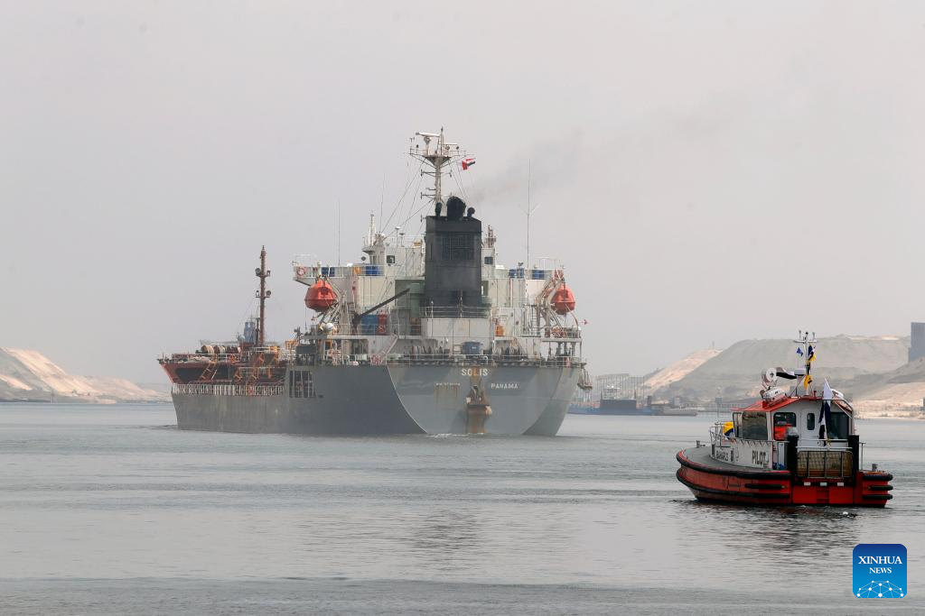 A ship sails on the Suez Canal in Ismailia Governorate, Egypt, on July 31, 2025. Chairman of the Suez Canal Authority Osama Rabie said on Thursday that the Suez Canal has generated 153.4 billion U.S. dollars in revenues and facilitated the transit of approximately 1.1 million ships since the waterway's nationalization in 1956 to date. (Xinhua/Ahmed Gomaa)