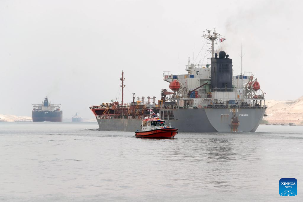 Ships sail on the Suez Canal in Ismailia Governorate, Egypt, on July 31, 2025. Chairman of the Suez Canal Authority Osama Rabie said on Thursday that the Suez Canal has generated 153.4 billion U.S. dollars in revenues and facilitated the transit of approximately 1.1 million ships since the waterway's nationalization in 1956 to date. (Xinhua/Ahmed Gomaa)
