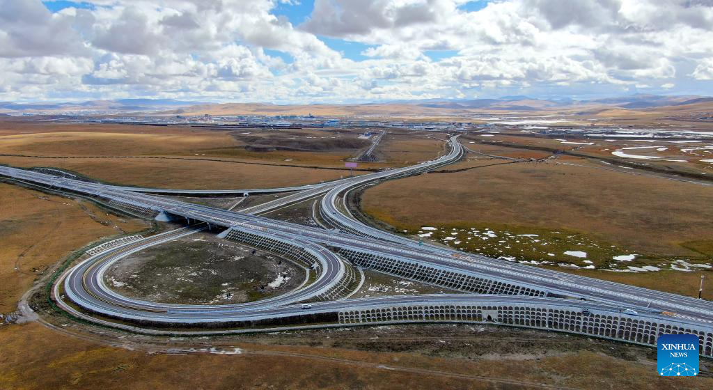 This aerial drone photo taken on Sept. 27, 2021 shows the high-grade highway from Lhasa to Nagqu in southwest China's Xizang Autonomous Region. From 2012 to 2024, Xizang has completed a total investment of 401.925 billion yuan (about 55.86 billion U.S. dollars) in fixed assets in highway transportation, and the total highway mileage has increased from 65,200 kilometers in 2012 to 124,900 kilometers by the end of 2024.