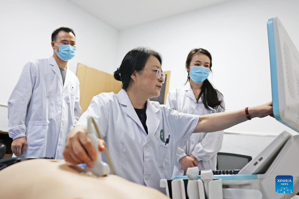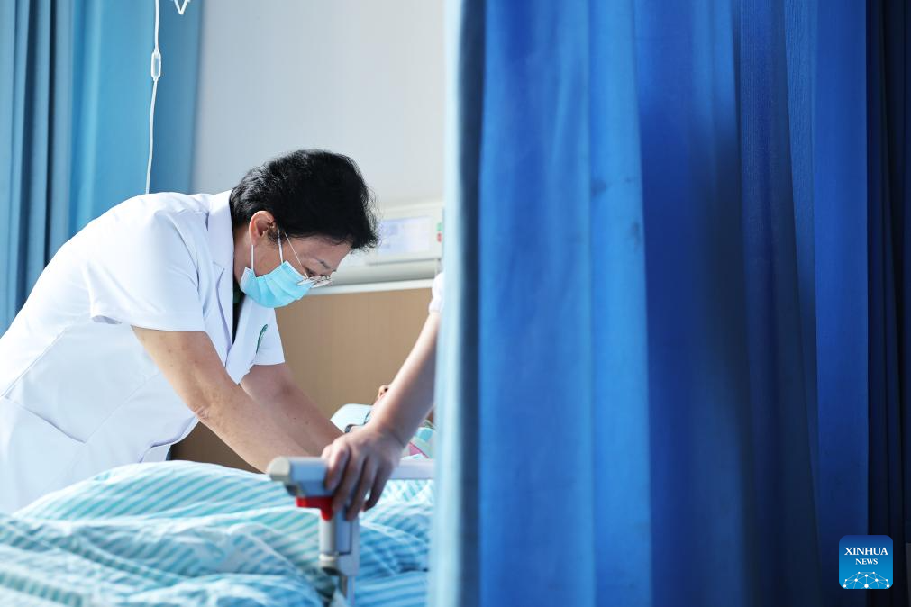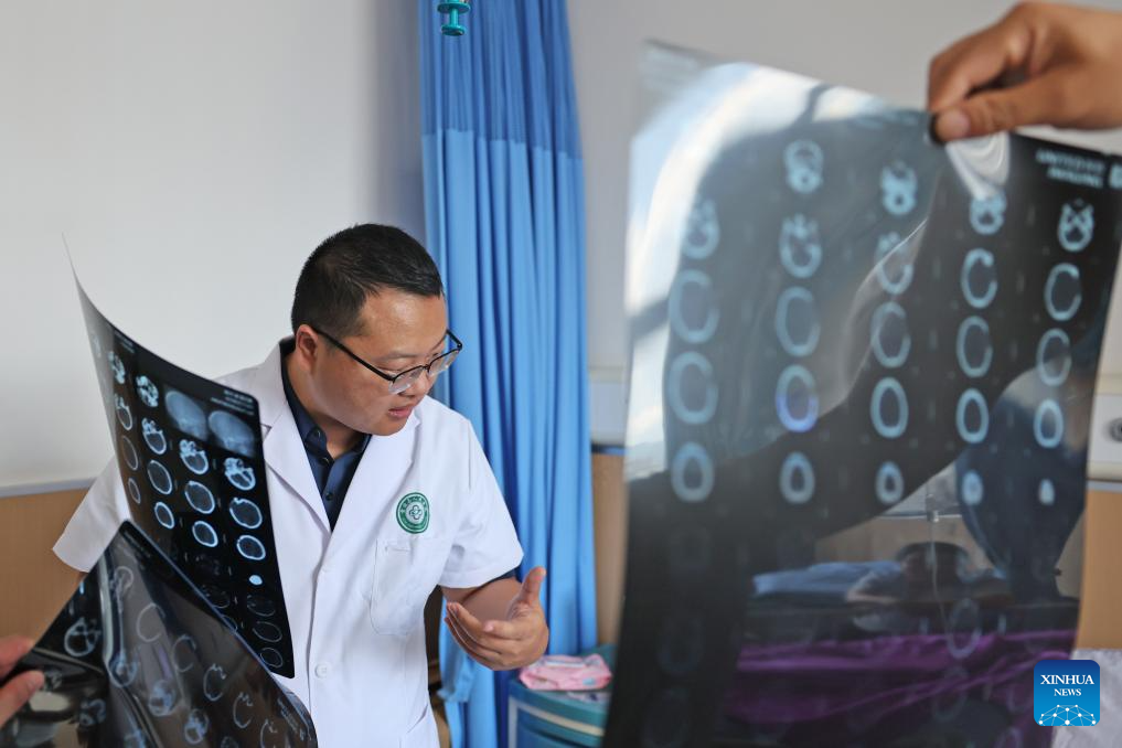 Doctor Ni Yan checks a patient at Renmin Hospital of Leibo County, Liangshan Yi Autonomous Prefecture, southwest China's Sichuan Province, Aug. 1, 2025. A team of medical experts arrived at Renmin Hospital of Leibo County on Friday, starting a month-long medical aid mission. They will focus on improving the diagnostic and treatment capabilities of the hospital. (Xinhua/Lu Ye)