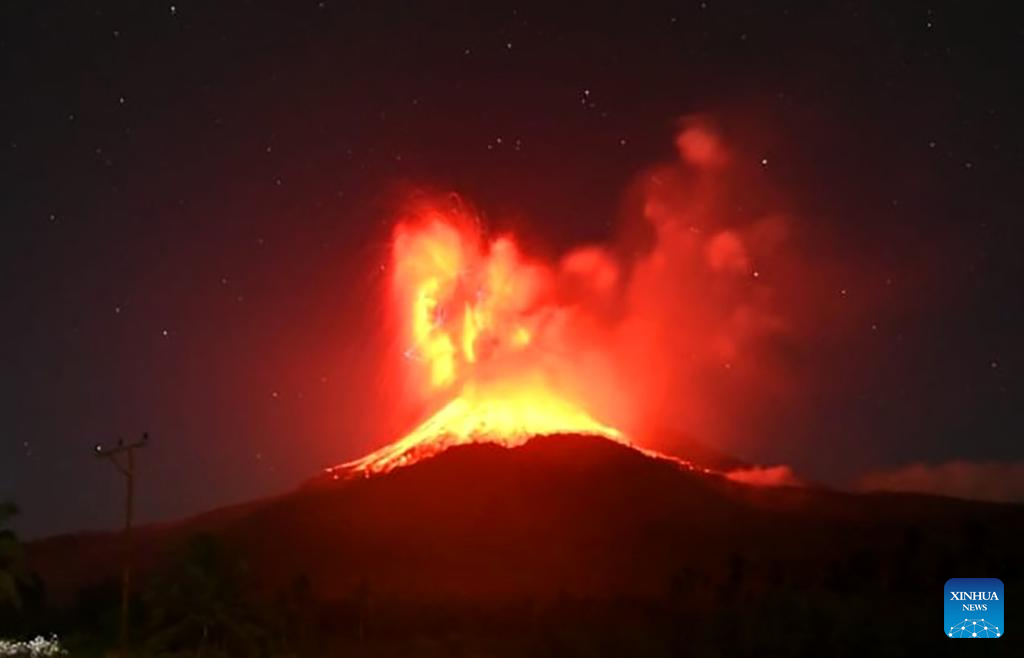 JAKARTA, Aug. 2 (Xinhua) -- Mount Lewotobi Laki-laki in Indonesia's East Nusa Tenggara province erupted twice between Friday night and early Saturday, sending ash columns as high as 18,000 meters into the sky, according to local authorities.