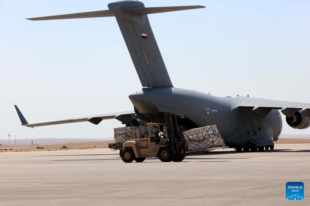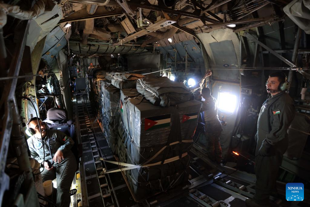 JERUSALEM/AMMAN, Aug. 1 (Xinhua) -- Several countries, including Jordan, Egypt, Germany, the United Arab Emirates (UAE), France and Spain, on Friday executed joint airdrops in Gaza, delivering humanitarian aid into the enclave.