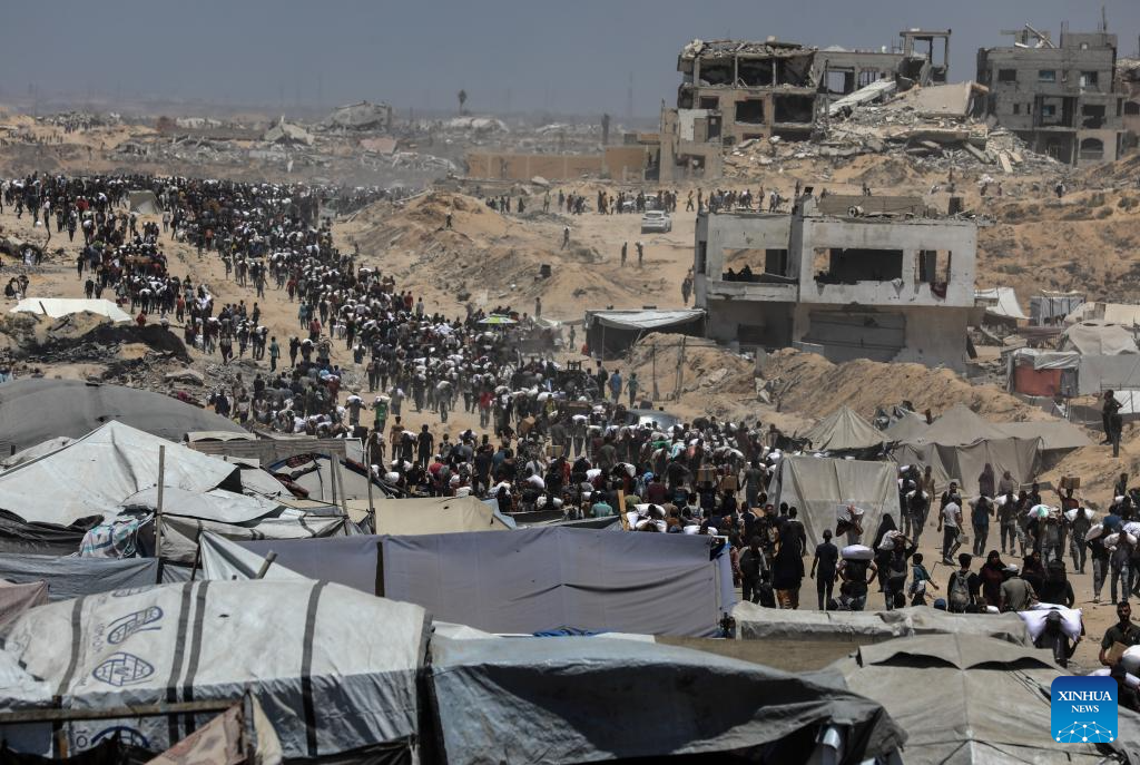 Palestinians transfer humanitarian aid in Beit Lahia, northern Gaza Strip, on Aug. 1, 2025. (Photo by Rizek Abdeljawad/Xinhua)