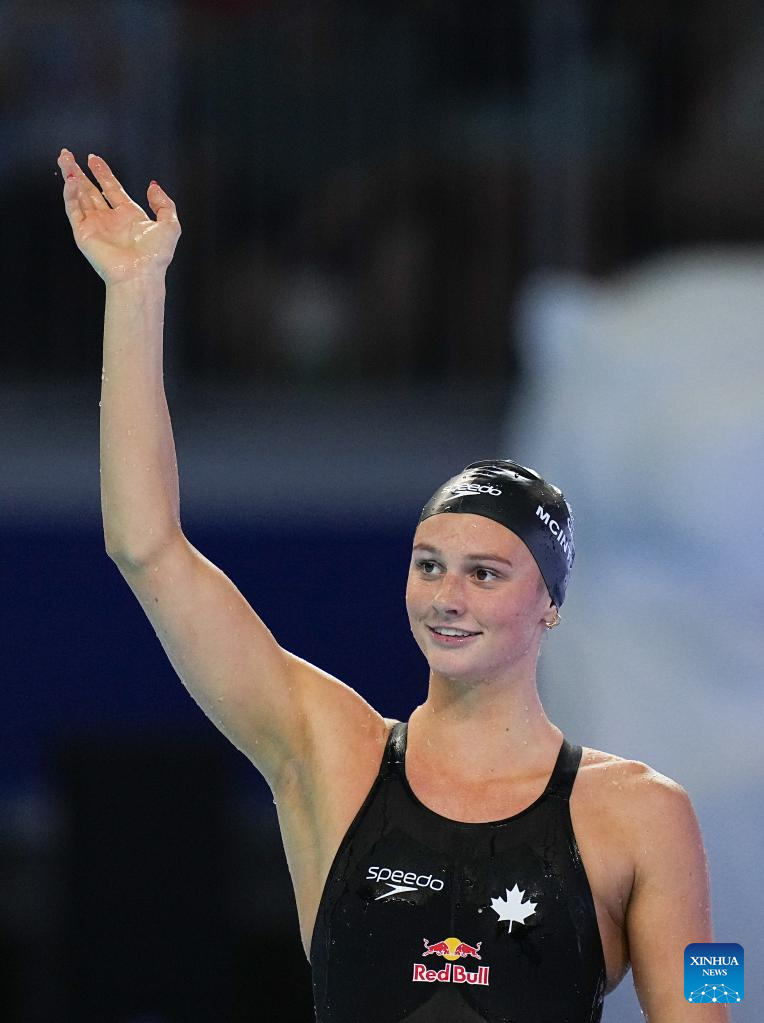 Summer McIntosh of Canada competes during the women's 400m individual medley final of swimming at the World Aquatics Championships in Singapore, Aug. 3, 2025. (Xinhua/Xia Yifang)