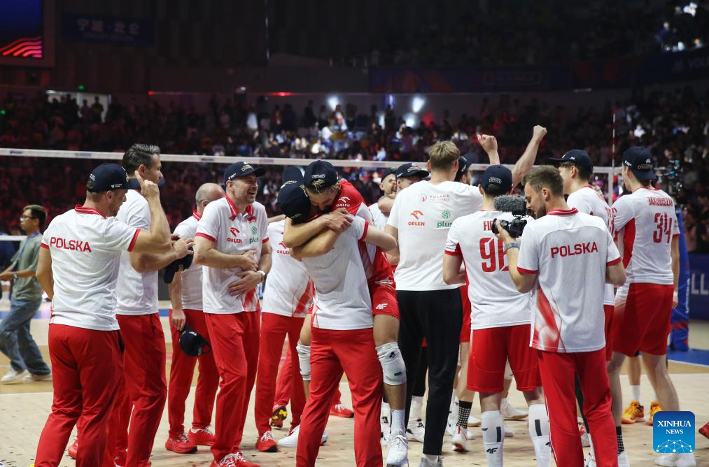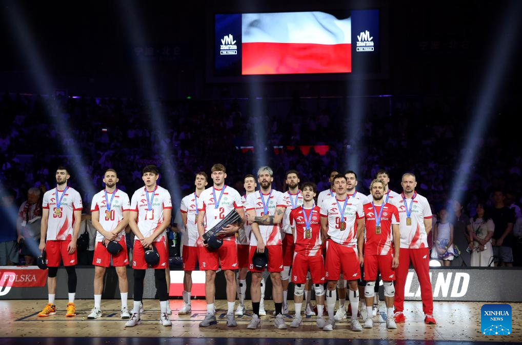 NINGBO, China, Aug. 3 (Xinhua) -- World No. 1 Poland defeated Italy in straight sets to win the 2025 FIVB Men's Volleyball Nations League (VNL) Finals on Sunday, securing its second VNL trophy.