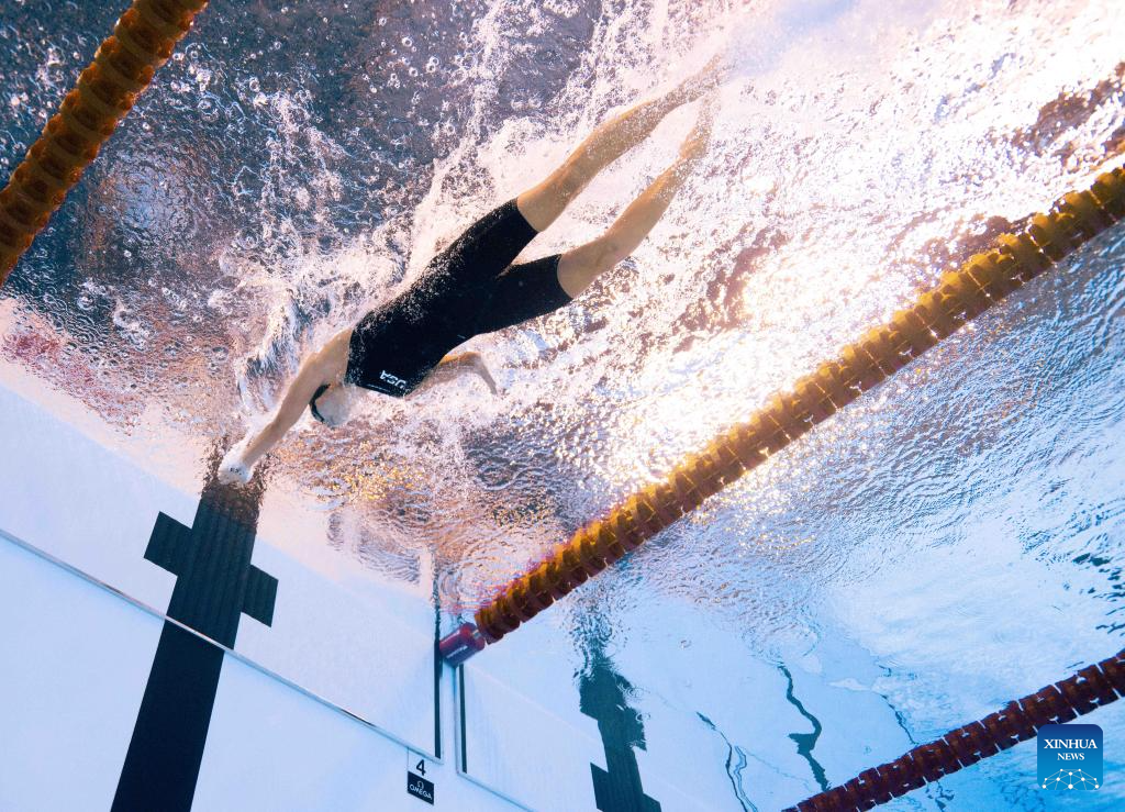 Team the United States' Torri Huske competes during the women's 4X100m medley relay final of swimming at the World Aquatics Championships in Singapore, Aug. 3, 2025. (Xinhua/Xue Yuge)