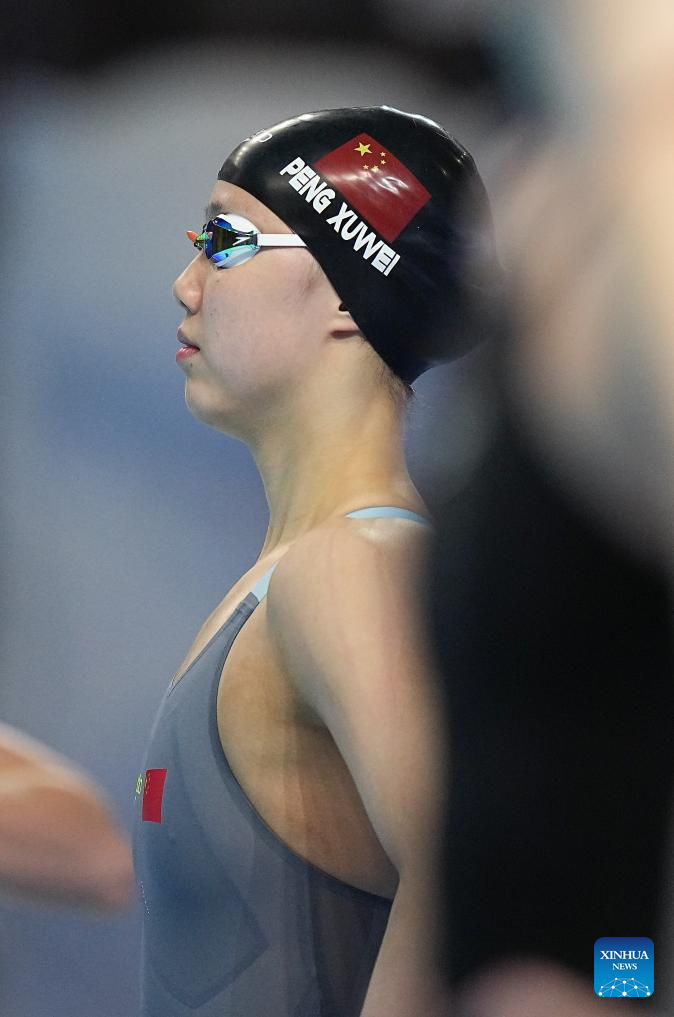 Team China's Peng Xuwei is seen before the women's 4X100m medley relay final of swimming at the World Aquatics Championships in Singapore, Aug. 3, 2025. (Xinhua/Luo Yuan)
