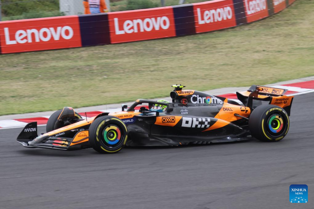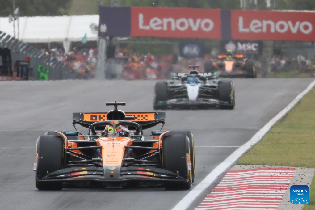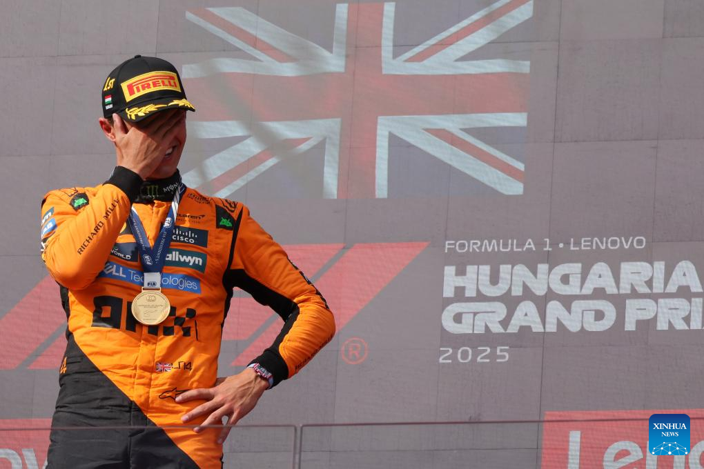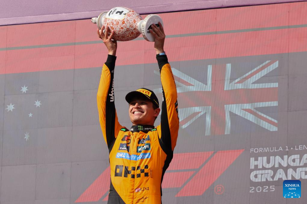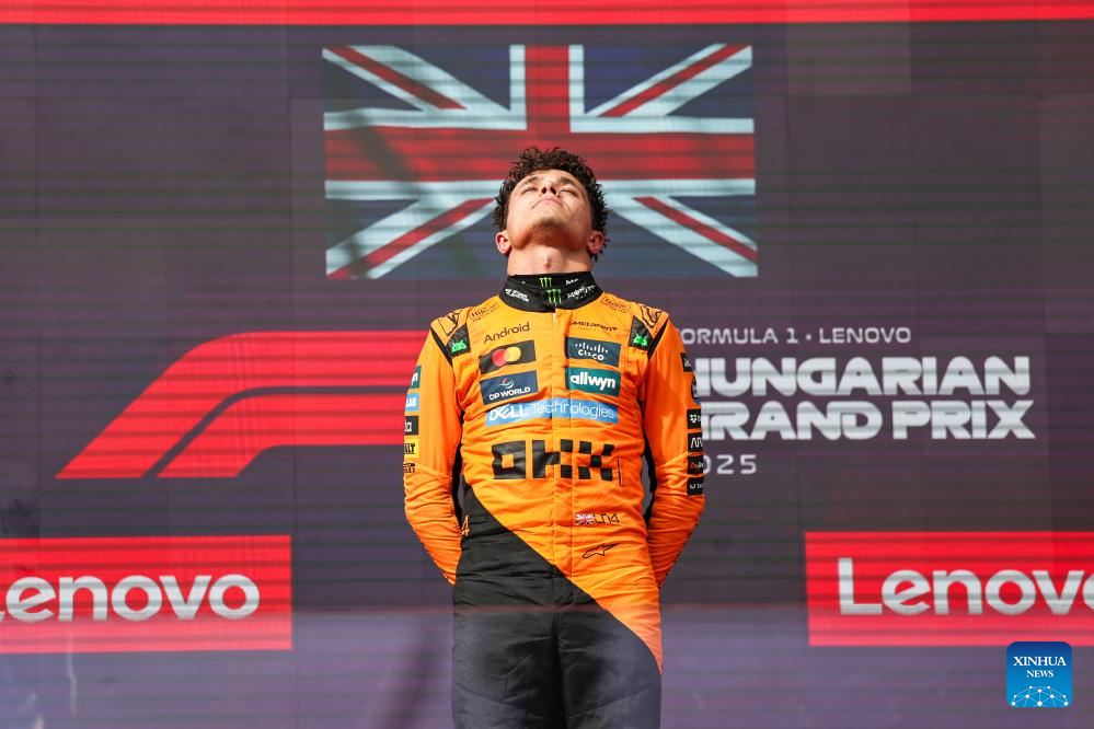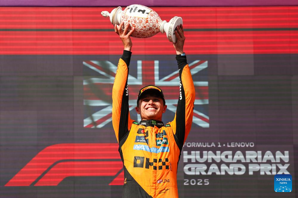 BEIJING, Aug. 4 (Xinhua) -- Lando Norris used a bold one-stop strategy to hold off McLaren teammate Oscar Piastri by just 0.7 seconds to win Sunday's Formula 1 Hungarian Grand Prix.