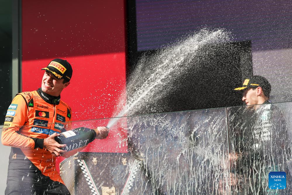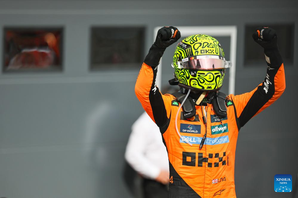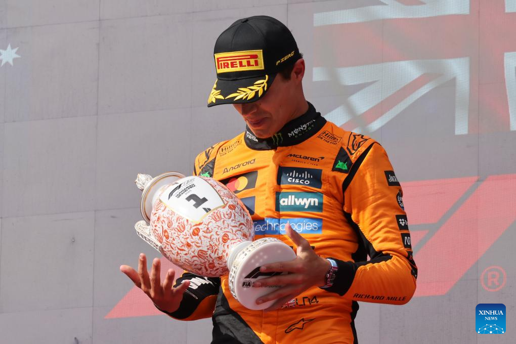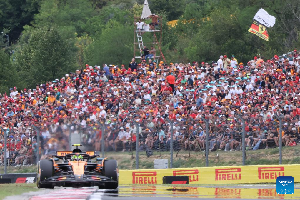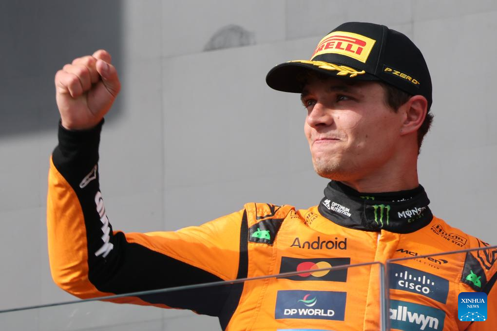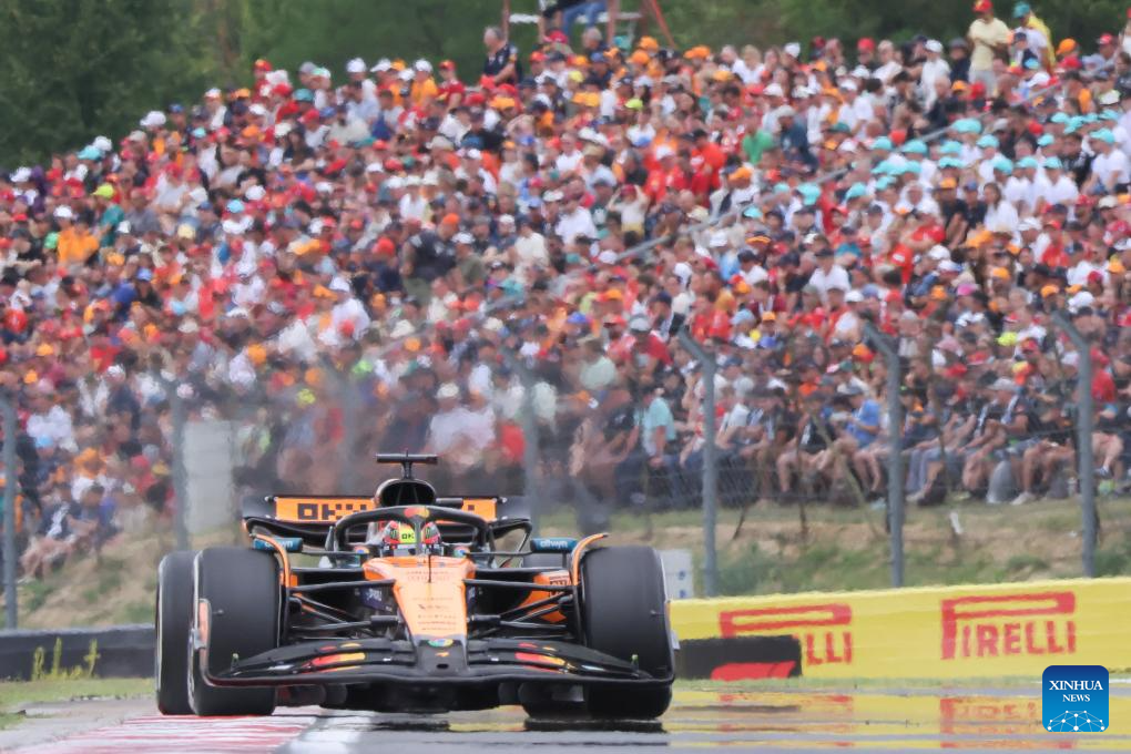 BEIJING, Aug. 4 (Xinhua) -- Lando Norris used a bold one-stop strategy to hold off McLaren teammate Oscar Piastri by just 0.7 seconds to win Sunday's Formula 1 Hungarian Grand Prix.