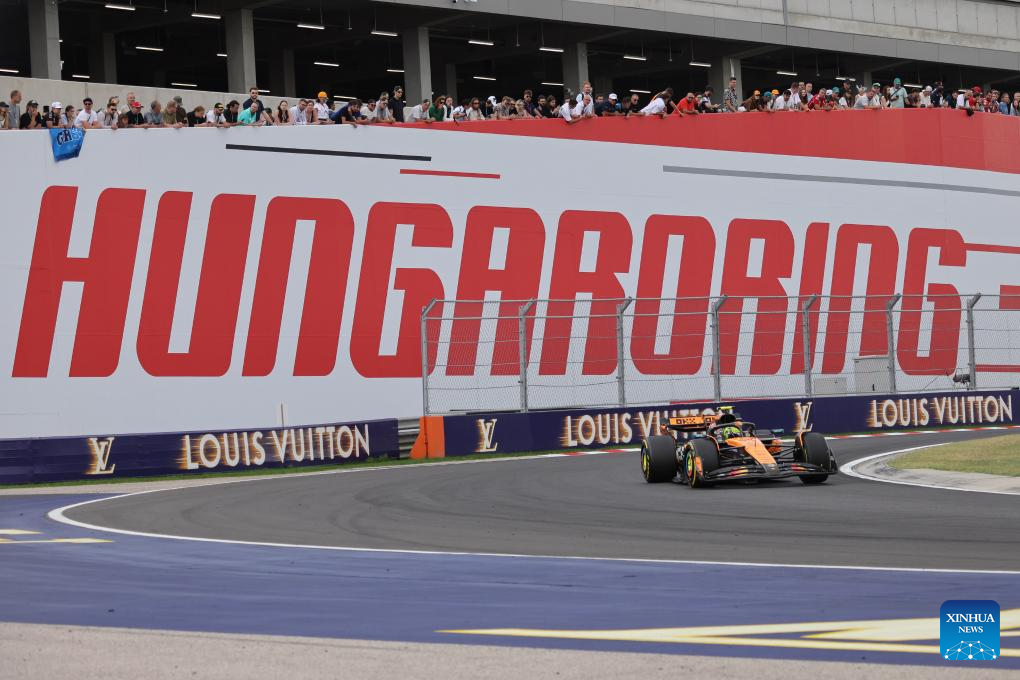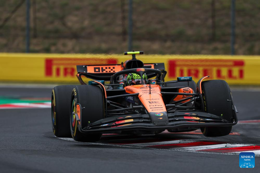 McLaren's British driver Lando Norris competes during the race of the Formula One Hungarian Grand Prix at the Hungaroring in Mogyorod, near Budapest, Hungary, on Aug. 3, 2025. (Photo by Qian Jun/Xinhua)