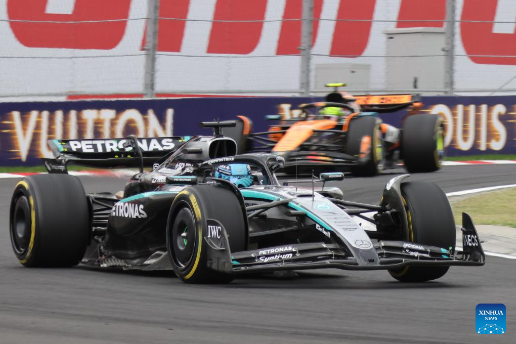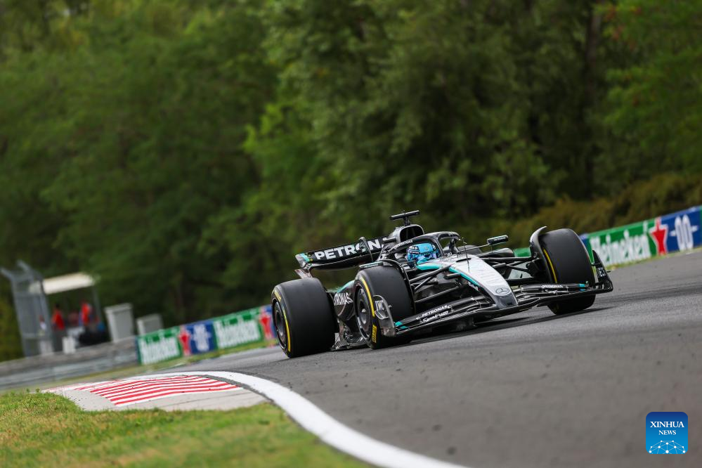 Mercedes' British driver George Russell competes during the race of the Formula One Hungarian Grand Prix at the Hungaroring in Mogyorod, near Budapest, Hungary, on Aug. 3, 2025. (Photo by Qian Jun/Xinhua)