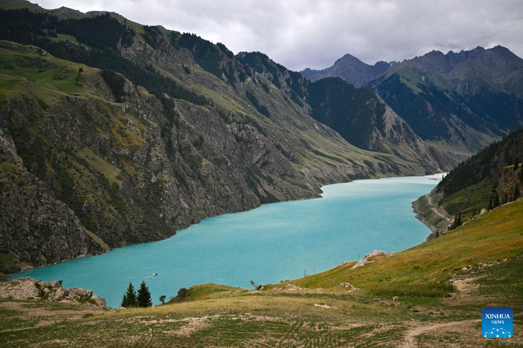 A boat sails on a lake in Zhaosu County of Ili Kazak Autonomous Prefecture, northwest China's Xinjiang Uygur Autonomous Region, July 30, 2025. Ili Kazak Autonomous Prefecture has ushered in its peak tourism period. The region's unique natural landscapes and cultural sites have attracted a large number of visitors. It received 54.93 million domestic tourists in the first seven months of this year, a year-on-year increase of 10.31 percent. (Xinhua/Xin Yuewei)